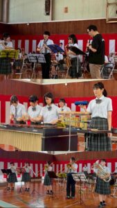 10月5日に標記の依頼演奏を行いました。夏のコンクールを終え、3年生が引退後、新体制での初舞台でした。楽曲だけでなく流れ、司会など、生徒達自身が考え、お客様のために楽しでいただく演奏を目標に練習をしてきました。ご来場いただきました皆様、心温まる拍手と声援、誠にありがとうございました。まだまだ技術面では足りない所は多々ありましたが、音楽を通して、音楽の楽しさに加えて、喜びや感謝なども伝えられたのではないかと思います。今後も依頼演奏などにもどんどん出演させていただきたいと考えておりますので、いつでも学校までご連絡をお待ちしております!