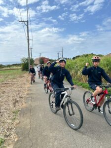 シュノーケリング、サイクリング、サーターアンダーギー作り、ブレスレット作り、アクアドーム作り