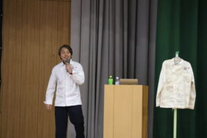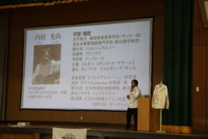 講師として南極昭和基地で1年間、第58次日本南極地域観測隊の調理をされた内村光尚さんをお招きし、南極での生活においてクイズを交えながら講演していただいた。
