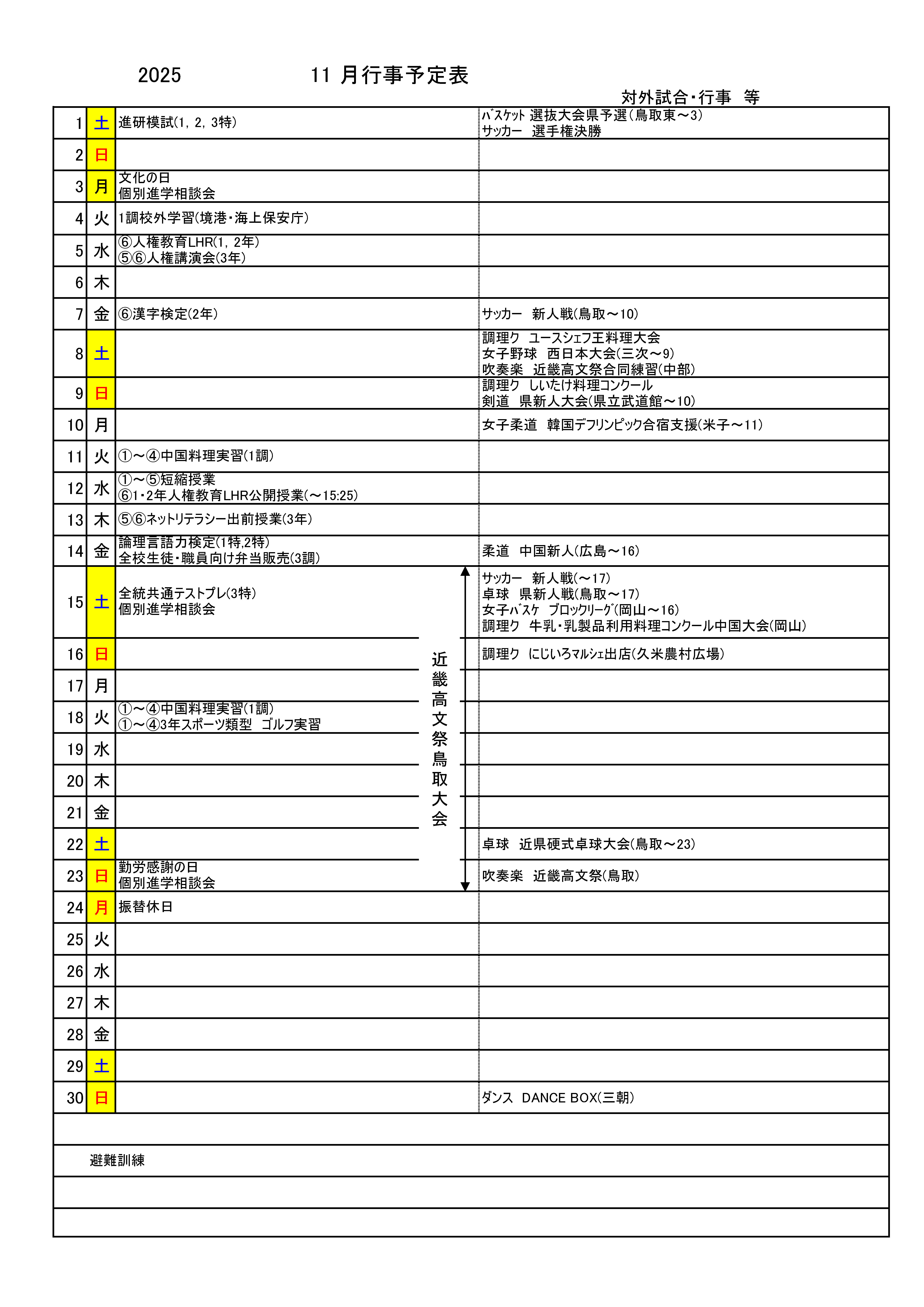 月間行事予定