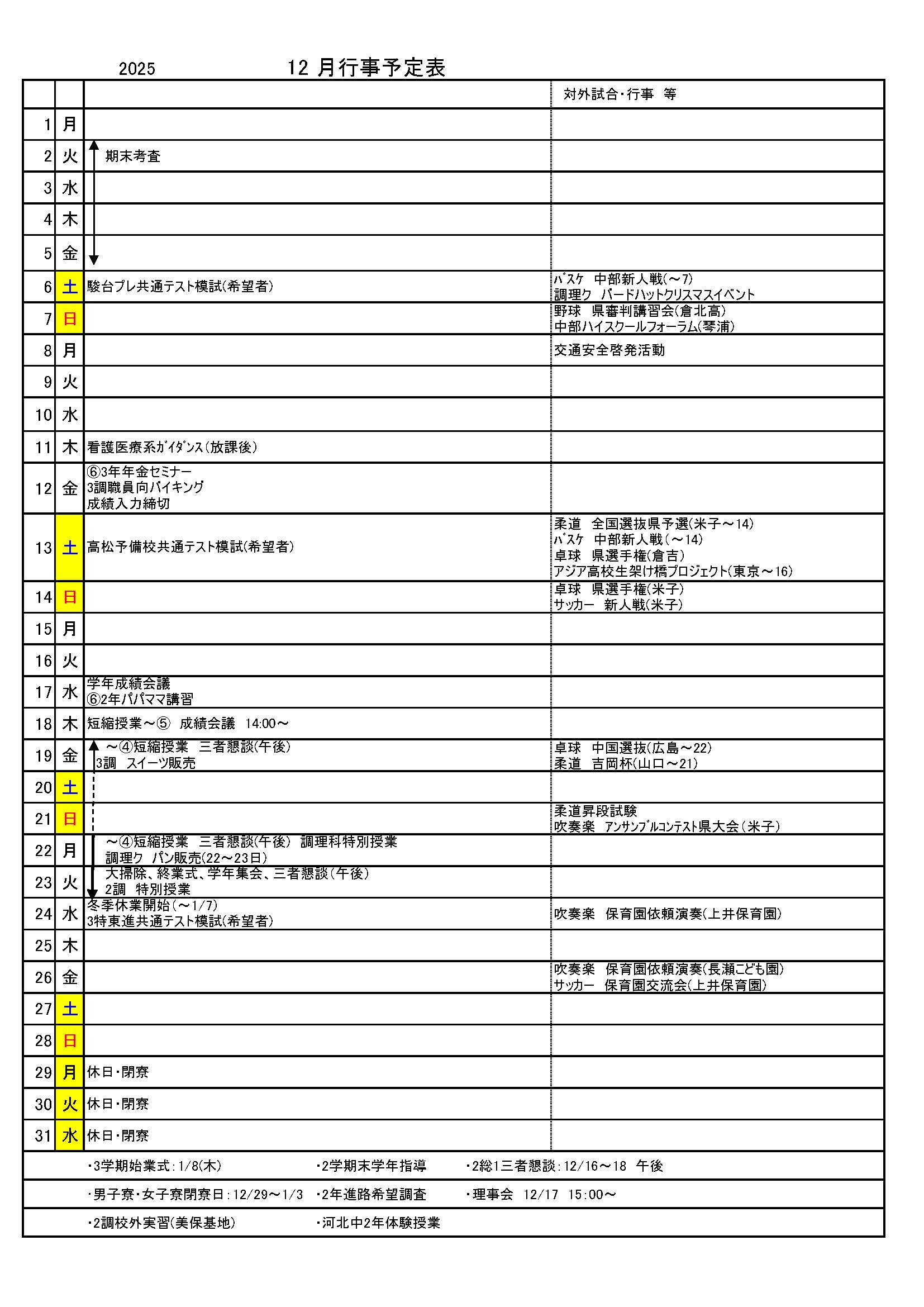 年間/月間行事