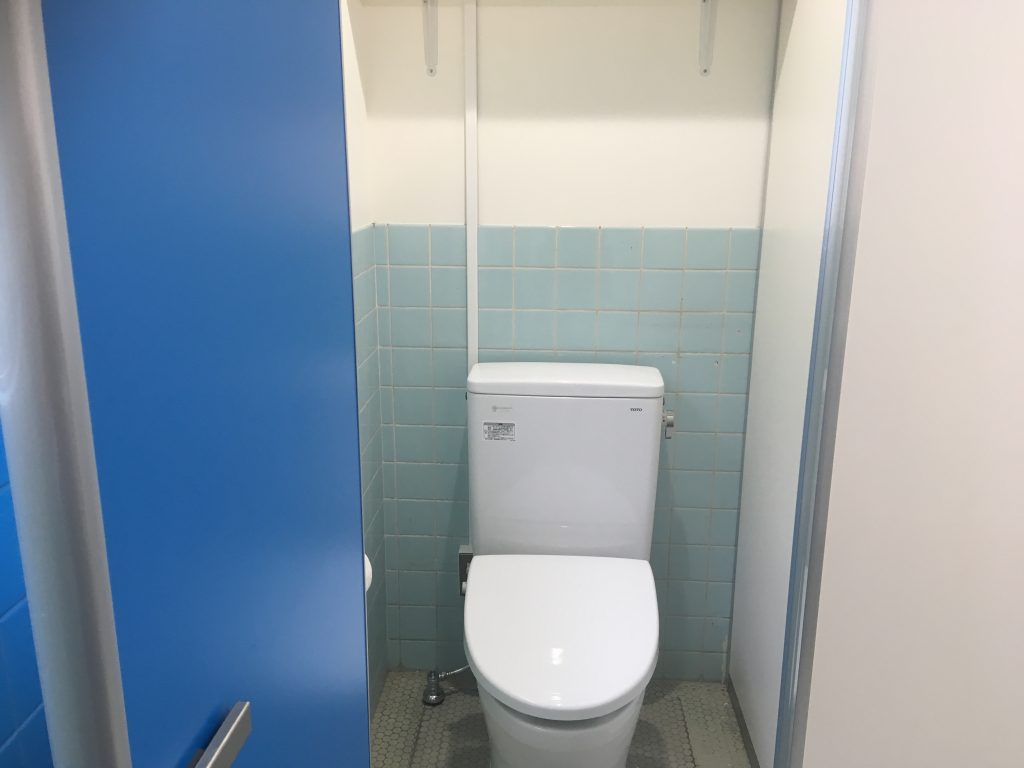 第二体育館・柔道場の改築に続き、夏季休業中に第一体育館通路のトイレの改修を行いました。